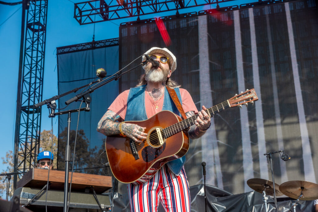 Nonetheless, I did the almost tightrope walk between the rows of the blanket-lined field to watch the Donovan Frankenreiter and G. Love set. It’s an interesting collaboration that they do. G. Love and Frankenreiter both rotate being the lead singers on songs. The set was a bit off. Sonically, it didn’t sound great. The Frankenreiter-led songs were more enjoyable than G. Love’s. The most interesting thing from the set was an artist creating a live painting of the two as they performed.