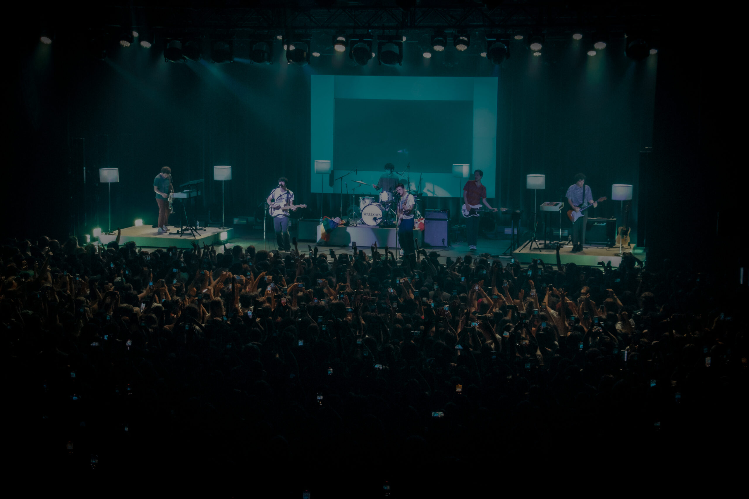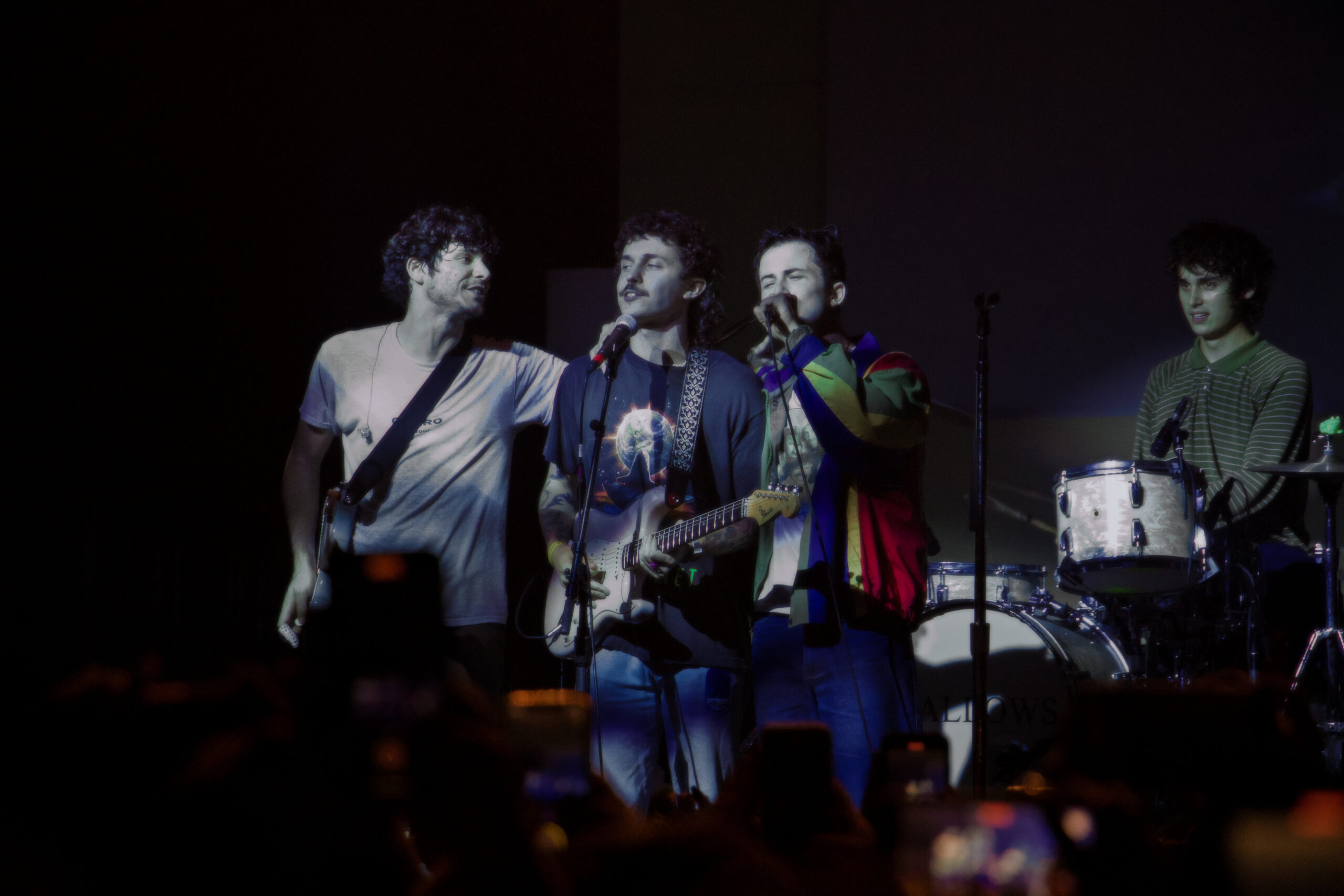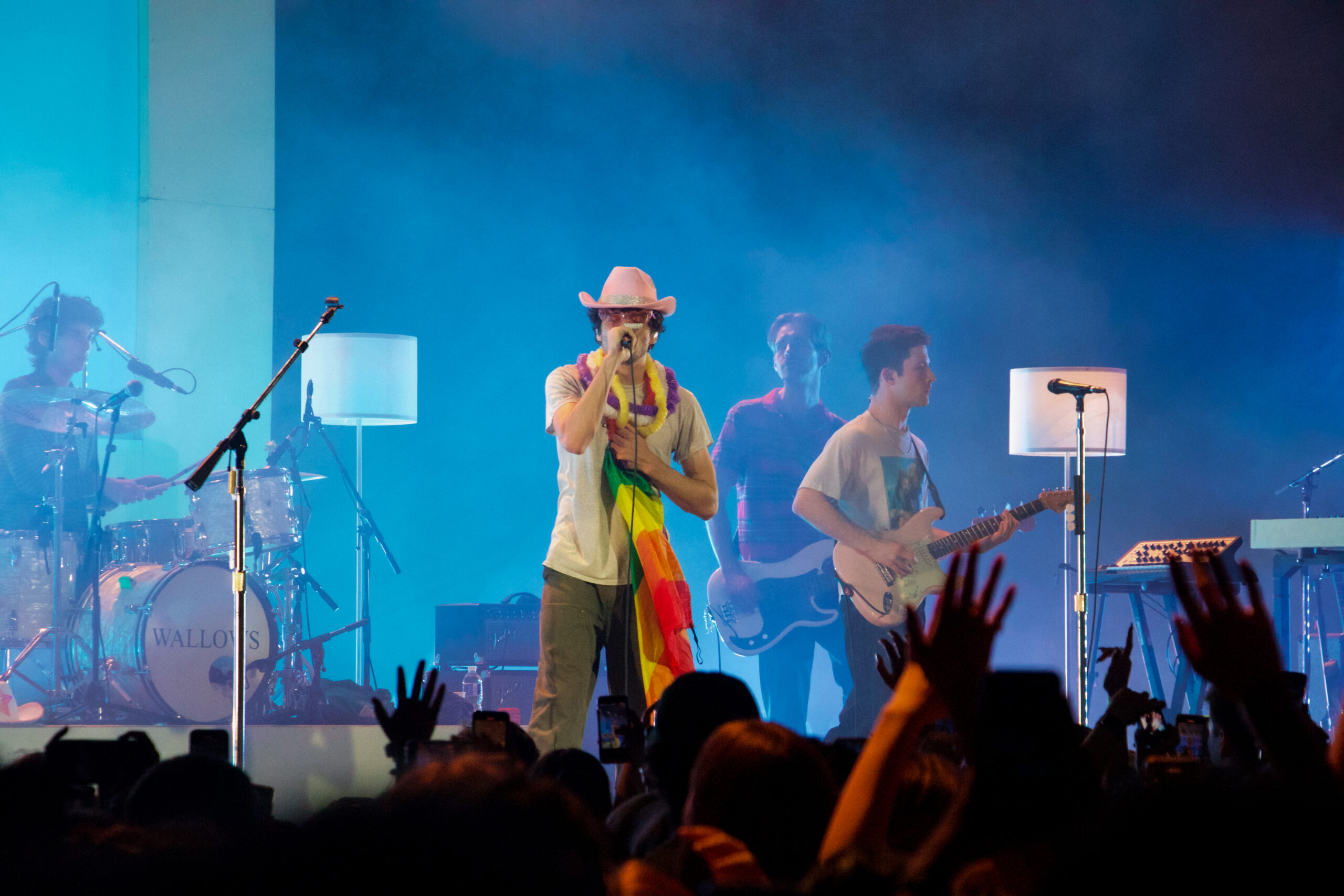 As the night went on, Wallows couldn’t help but mention the big event that took place earlier that day, pride! The band wished everyone a happy pride. Lead singer and rhythm guitarist Dylan Minnette expressed how he tried to wear the most colourful piece of clothing he owned to show his support. The band members then sang “1980s Horror Film II,” a song known for its iconic line: “I’m really not that into guys.” The lead vocalist of this song, Braeden Lemasters, danced around the stage wearing colourful accessories and even held up a fan’s pride flag throughout the song. The flag was left sitting by Cole’s drumset after the song ended and could be seen for the rest of the show.